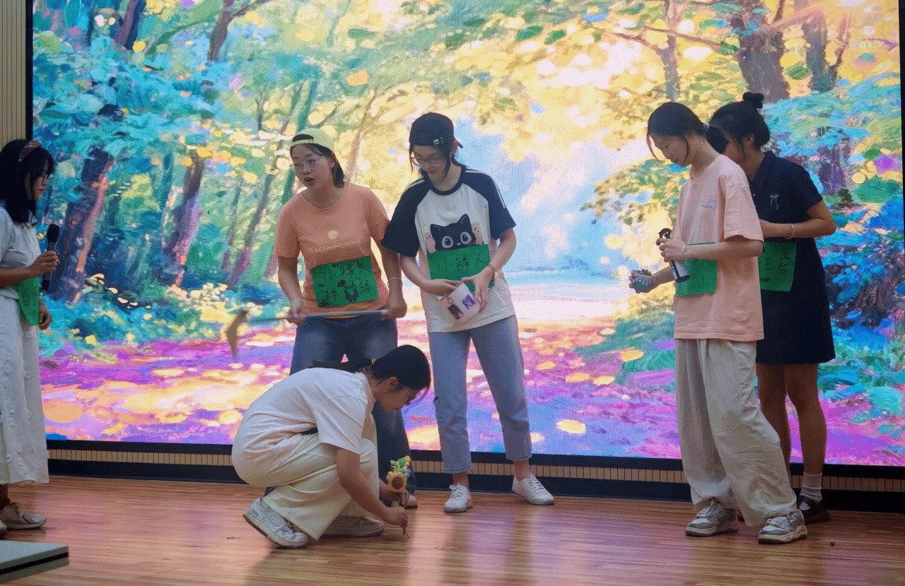 不知道对不队由达理2A402宿舍和达理2A403宿舍共同组成,她们带来的情景剧《生态新章:白雪公主的绿色征程》讲述了一个充满童话色彩的环保故事,选手们通过生动的表演呼吁大家共同守护绿水青山,传达出绿色主题。