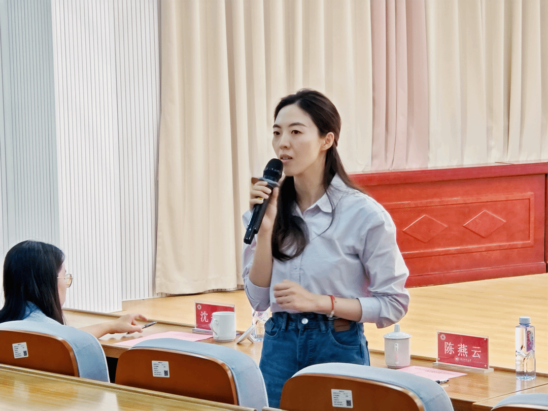 全部选手演唱完毕后,陈燕云老师对本次比赛进行点评。她首先充分肯定了所有选手的精彩表现,特别称赞选手们在歌曲情感表达、台风展现上的用心,既展现了青年学子的青春风采,也让红歌有了 “新演绎”;同时着重强调,红歌不仅是历史的 “声音印记”,更是青年学子坚定理想信念、厚植爱国情怀的 “精神养分”,希望学子们能在红歌传唱中读懂历史、汲取力量。随后,沈书伊老师对比赛进行总结。她表示,本次红歌大赛不仅是一场音乐盛宴,更是一堂生动的红色思政课。她赞扬同学们用歌声传递信仰、用舞台诠释担当,充分展现了马院学子昂扬向上的精神风貌。她鼓励大家以此次比赛为契机,将红歌中蕴含的奋斗精神与爱国情怀融入日常学习与生活,争做有理想、有本领、有担当的新时代青年。