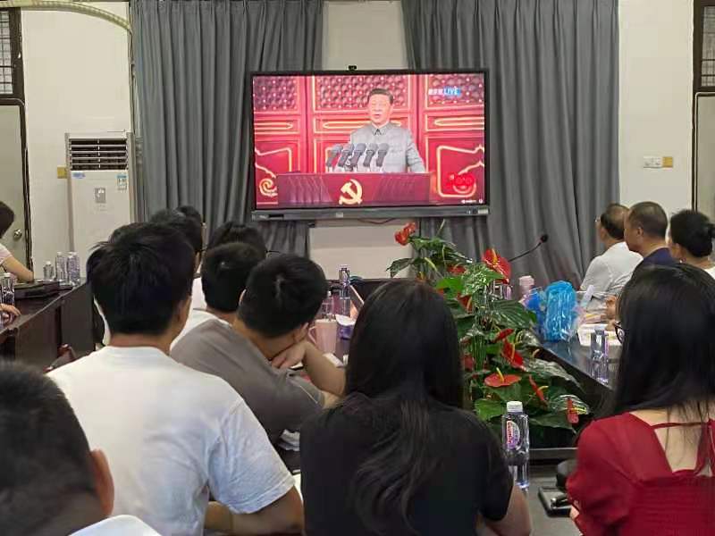 7月1日上午,庆祝中国共产党成立100周年大会在首都北京隆重举行。yl34511线路中心党委及时组织全院师生收听收看大会盛况,认真聆听习近平总书记的重要讲话。学院党委班子成员、支部书记、教研室主任、教师和学生代表近70人在综合楼中区404会议室集中收看了现场直播,其他师生通过广播电视、新闻网站、新媒体平台等方式进行了收听收看。