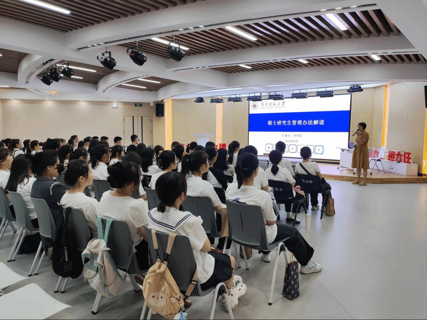 为促进学院2023级研究生新生尽快熟悉研究生管理规章制度,明确学业发展规划,9月6日下午,我院于达理活动中心三楼举行研究生管理规定解读会。会议邀请校学生处研究生发展服务科科长刘秀英老师主讲,会议由辅导员潘怀杰主持,2023级全体研究生参加。