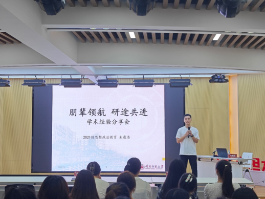 2023年9月6日下午16点,我院于达理活动中心三楼成功举办了“朋辈领航 研途共进”学术经验分享及研究生学生干部经验交流分享会。本次分享会分别邀请了2021级思想政治教育研究生朱崴浩和2021级思想政治教育研究生何明波担任嘉宾,2023级86名研究生新生参与此次分享会.
