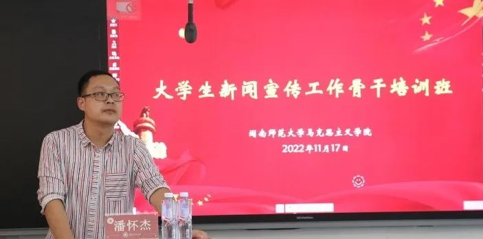 在开班仪式上,院团委副书记潘怀杰老师指出,本次培训班意在通过一系列培训,培养一批具有较强新闻写作能力和表达能力的青年宣传骨干人才,引导学生在宣传工作中把握正确政治方向,坚定价值导向,助力打造有温度、有高度、有深度的马院新媒体信息传播平台。