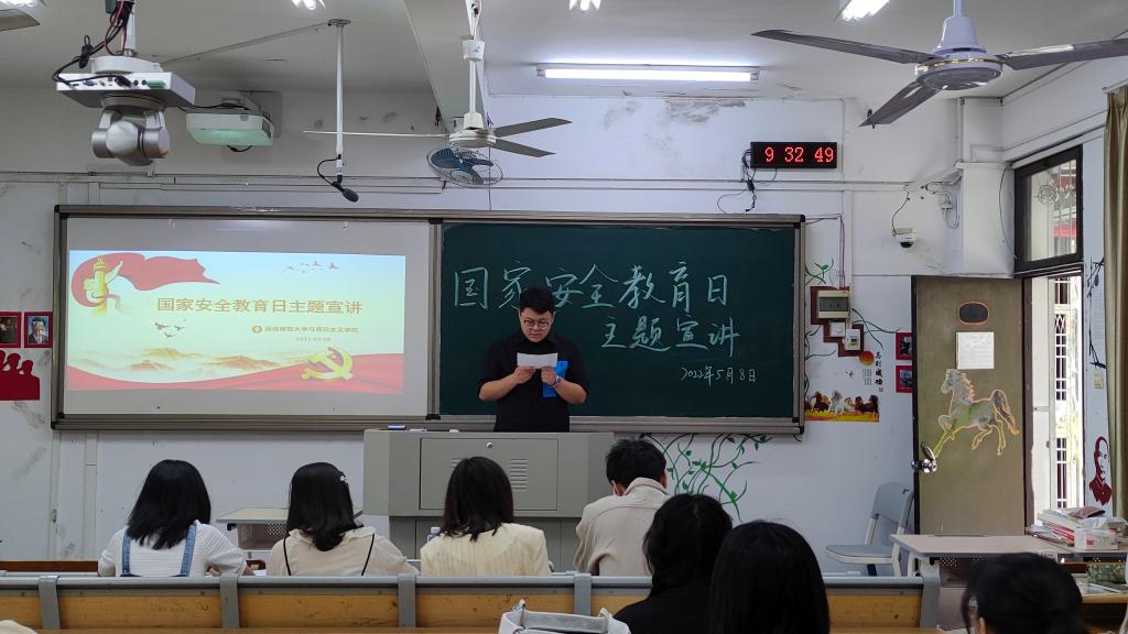 为深入贯彻总体国家安全观,加强国家安全教育,提升师生的国家安全意识,营造“国家安全、人人有责”的浓厚氛围,我院特于5月8日上午,在综合楼南区103教室举办国家安全教育日主题宣讲活动。