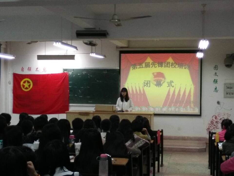 2015年12月6日20时,我院第五届先锋团校闭幕式于博西505顺利召开。在一首激昂的共青团歌后,辅导员李艳萍老师受邀上台为闭幕式致词。李老师先对我院学生工作的有序性表示肯定,而后着重强调了团队精神的重要性以及对我院今后发展的展望。