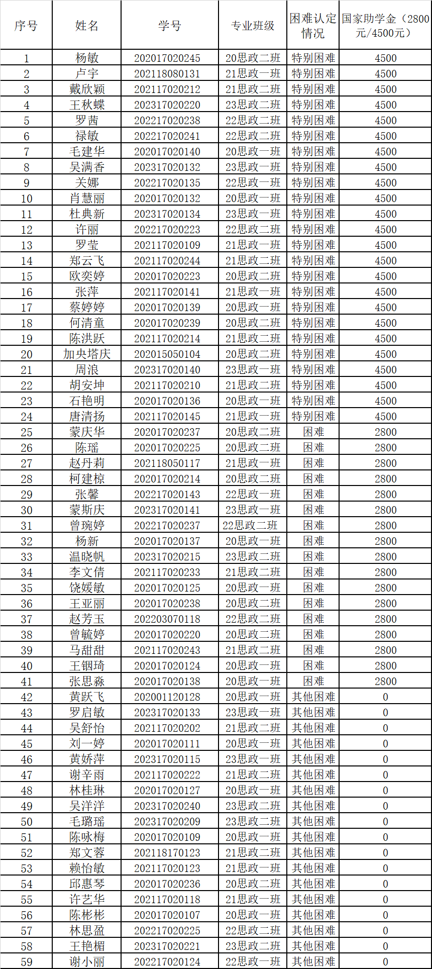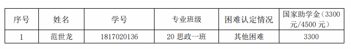 根据《闽南师范大学家庭经济困难学生认定工作及国家助学金评定暂行办法(修订)》(学工〔2023〕25 号)文件要求,现将我院2023-2024学年国家助学金评定名单公示如下: