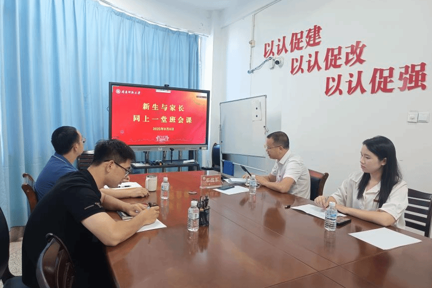 为帮助2025级新生与家长更好地了解大学意义、校情院情、新生报到事宜,做好入校报到安全提醒,9月6日下午,我院在线上开展“新生与家长同上一堂班会课”活动。院党委副书记邓战军,团委书记潘怀杰,辅导员沈书伊、任程龙,研究生兼职辅导员许婧,与全体2025级新生及家长共同参加。