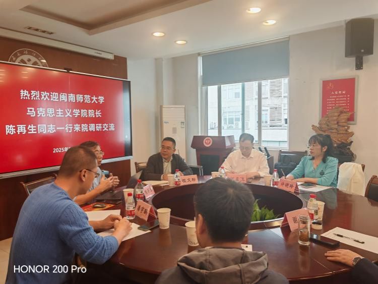 程文标副院长对陈再生院长一行表示欢迎,并系统介绍了该院在学科建设、课程开发及师资队伍建设方面的经验,重点分享了如何依托学校法学学科优势,推动马克思主义理论与法治教育相融合,形成具有政法特色的思政育人路径。