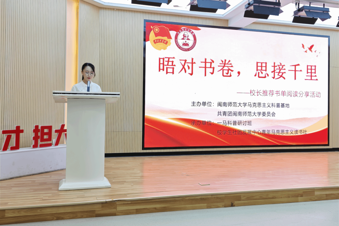为深入学习并贯彻党的二十届四中全会精神,全面落实“深化全民阅读活动”的战略部署,引导广大师生在阅读中坚定文化自信、提升思想境界、汲取智慧力量、拓宽认知视野,10月31日晚,我校在达理活动中心三楼成功举办“晤对书卷,思接千里”校长推荐书单阅读主题活动。本次活动由闽南师范大学马克思主义科普基地、共青团闽南师范大学委员会主办,一马科普研讨班、校学生社团发展中心青年马克思主义读书社联合承办。闽南师范大学团委书记童娟老师、yl34511线路中心党委副书记邓战军老师、yl34511线路中心副教授姚禹老师出席活动。 本次活动以校长精心挑选的书单为核心,营造出书香氤氲、思想交融的浓厚氛围。教师代表与学生共读人共聚一堂、共同研讨经典著作,围绕著作内容精髓,结合当下社会热点议题进行了深入对话,现场交流热烈,思想碰撞间迸发智慧火花,交流成效显著。