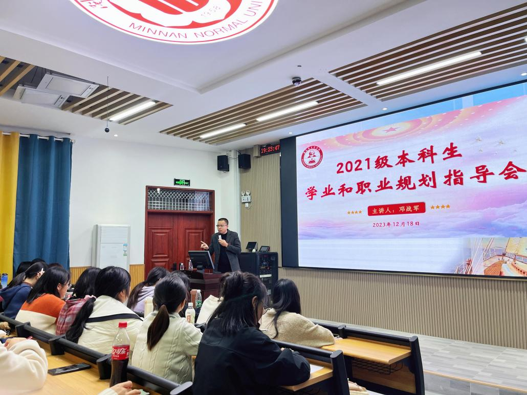 12月18日晚,我院在东门梯一召开2021级本科生学业和职业规划指导会,会议由辅导员沈书伊主持,学院党委副书记邓战军主讲。(通讯员 沈书伊)