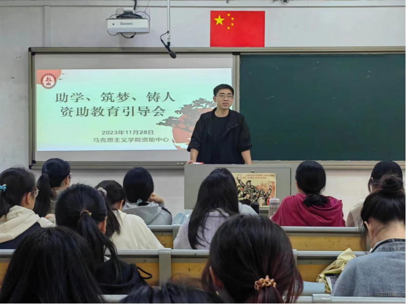 11月28日下午,我院资助中心于综南203召开助学、筑梦、铸人资助教育交流会,辅导员沈书伊、任程龙详细阐述学生资助的程序和标准。(通讯员 庞量午)