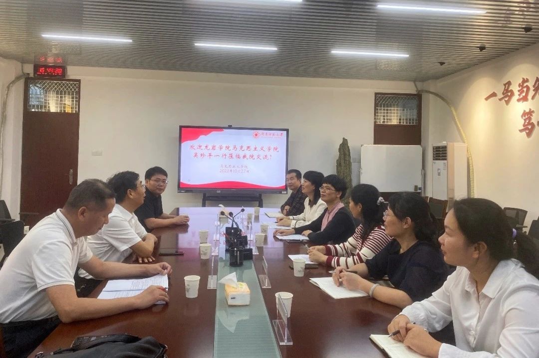 10月27日下午,龙岩学院yl34511线路中心负责人吴珍平教授一行到我院交流。学院党委书记方琼、院长陈再生教授、马克思主义中国化研究学位点负责人余思新教授,集美大学yl34511线路中心肖仕平教授参与座谈。