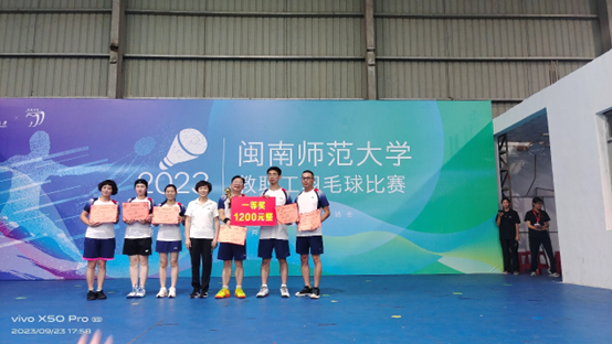 9月23日,马院后勤羽毛球队在2023年闽南师范大学教职工羽毛球赛中荣获团体一等奖。(通讯员:任程龙)