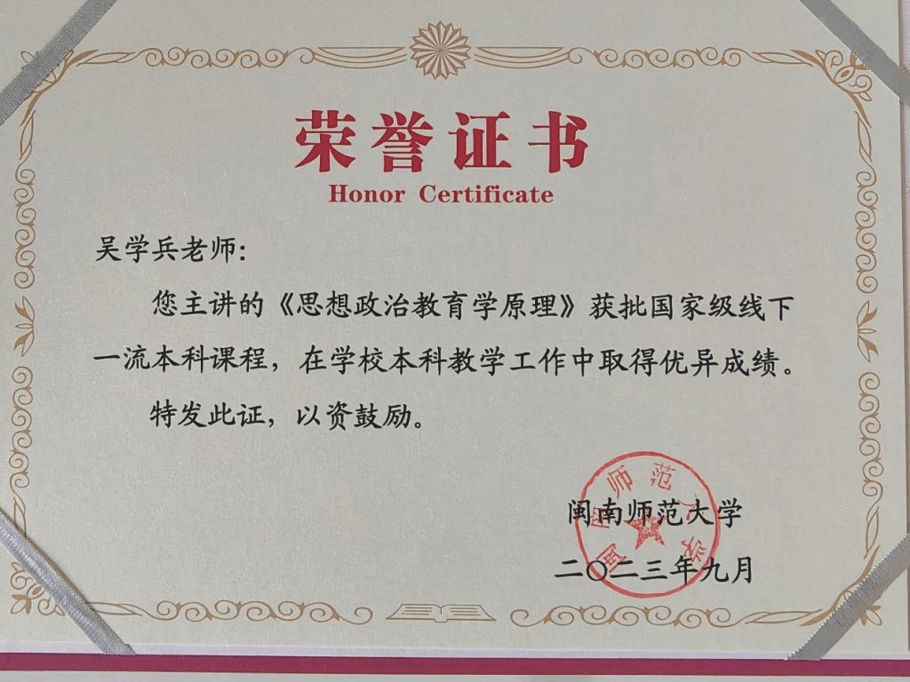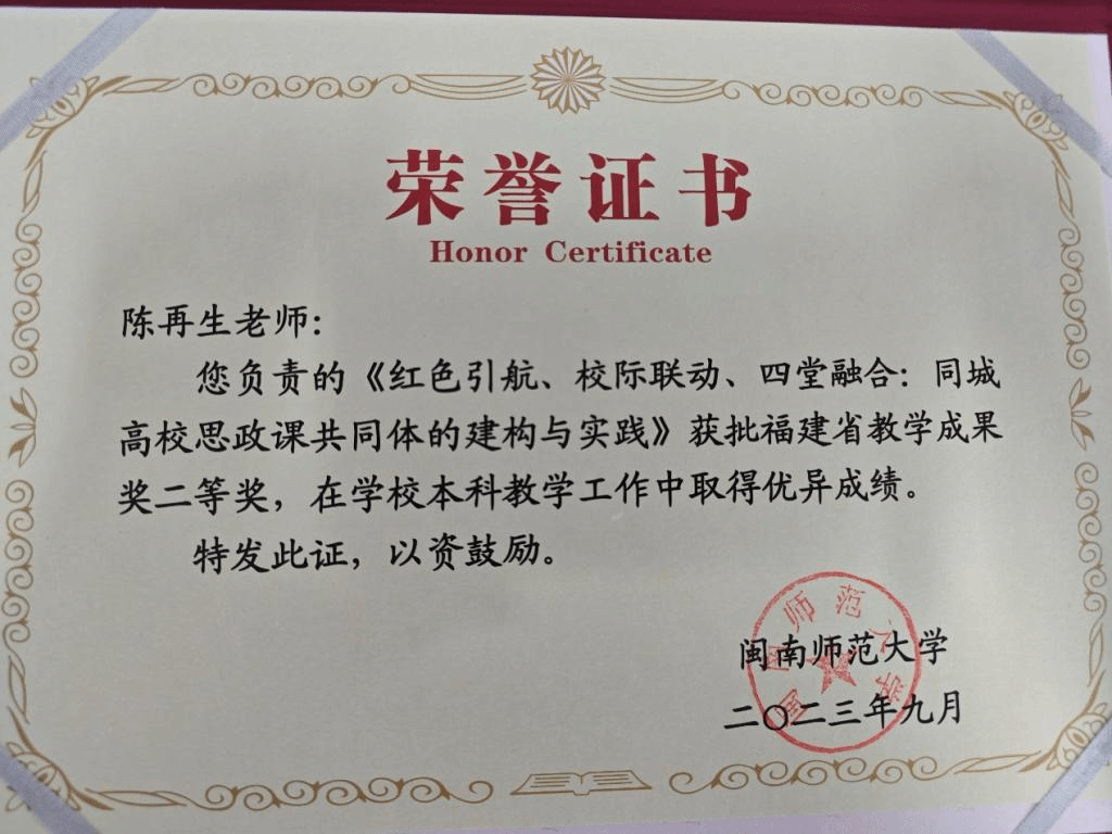 福建省教学成果奖二等奖