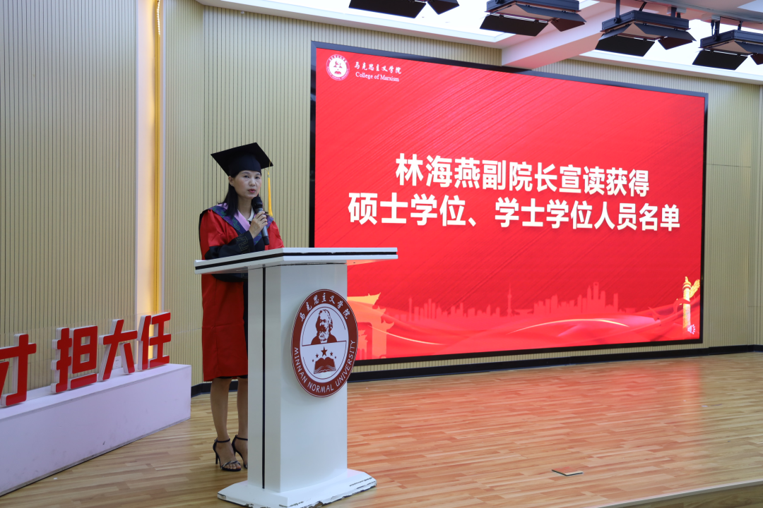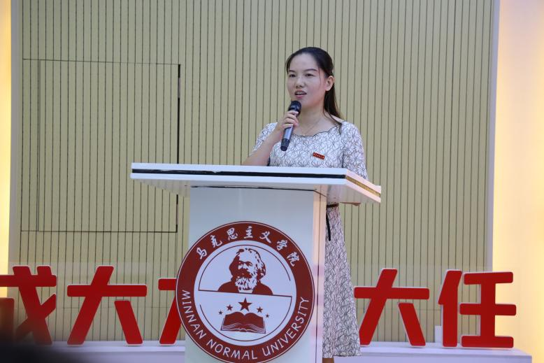 其后,考取天津大学博士生的徐龙泗和考取选调生的林舒文分别作为研究生毕业生和本科毕业生代表发言。他们回忆了在闽师、在马院的求学时光,并表示,不论过去将来,我们马院学子都会坚持初心,勇敢地奔赴下一场山海,更祝愿学院的明天更加美好!
