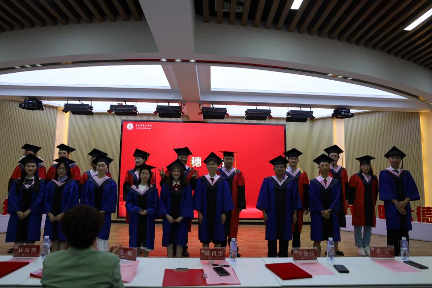 典礼伊始,首先我院副院长林海燕宣读获得硕士学位、学士学位毕业生名单;副院长牛俊伟宣读2023届优秀毕业生表彰决定。学院学位委员会为获得硕士学位、学士学位毕业生援正流苏。