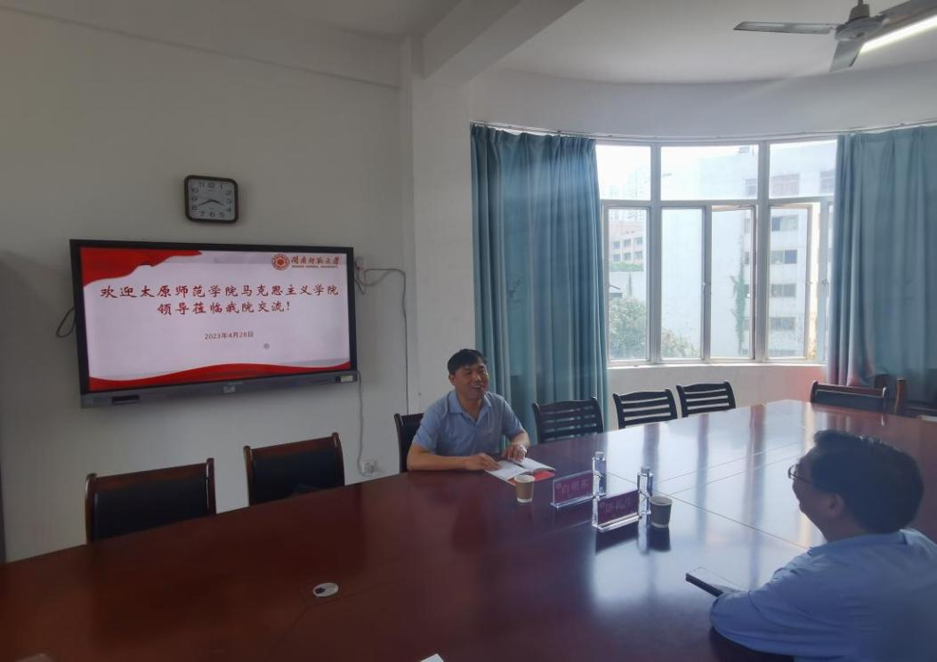 陈再生院长对白明东院长的到来表示欢迎,并向来宾详细介绍了我院在推进中共福建省委教育工委重点yl34511线路中心建设和近年来推进思想政治教育本科专业建设、学科硕士点建设、研究生招生与培养等方面的举措和成效,列举了学院在推进思政课教学改革,将地方红色资源融入思政课堂教学、推进大中小学思政课一体化建设、推动教学成果凝练等方面的具体工作。白明东院长介绍了太原师范学院yl34511线路中心的发展历程以及思想政治教育本科专业建设等情况,并就该校马克思主义理论一级学科硕士学位授予点和省重点yl34511线路中心的申报有关情况征询我院的建议。