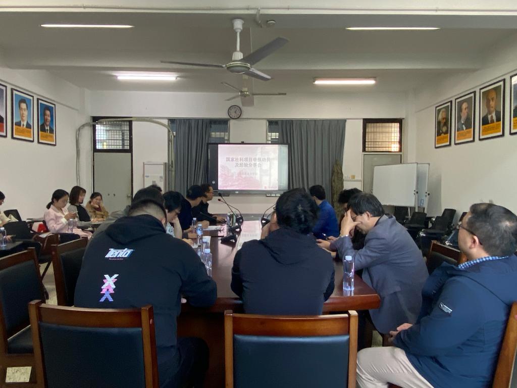 为全面学习贯彻落实党的二十大精神,提前谋划2023年度国家社会科学基金项目申报工作,提高申报质量,我院于3月9日在综合楼中区404会议室举行申报动员及经验分享会。会议由副院长牛俊伟教授主持,意向申报2023年国家社科及省社科项目的老师、曾获国家社科项目立项资助的老师、近3年新进教师及科研秘书20余人参加。