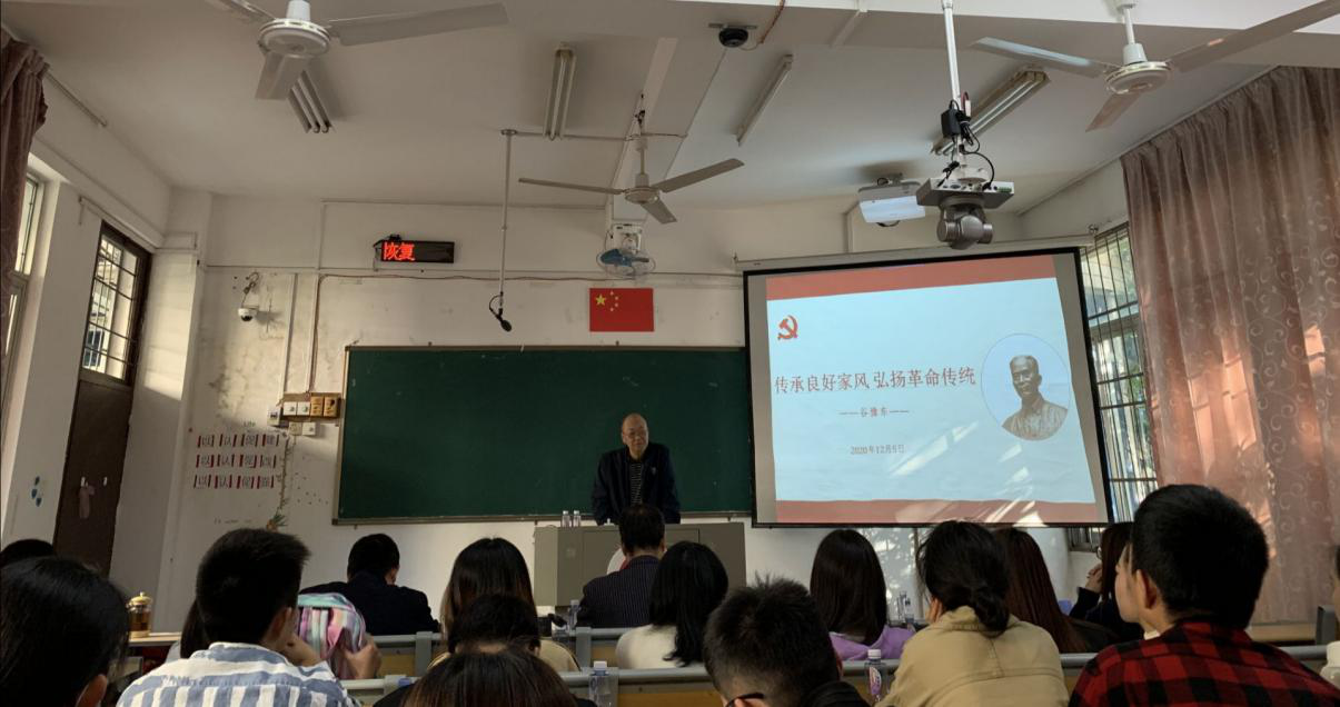 本次学术论坛首先邀请谷文昌的小儿子谷豫东做《传承良好家风,弘扬革命传统》专题讲座。谷先生从小事着手,讲述了谷文昌“清白持家、简朴本分、为民奉献”的家风,谷文昌教他踏实做人、干净做事、不追逐名利、不享受特权,在座每位同学被谷文昌优良家风所感动。