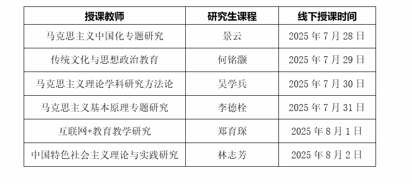 暑假六门研究生课程班将采取线上线下结合授课形式,授课地点为闽南师范大学yl34511线路中心综合楼中区404。