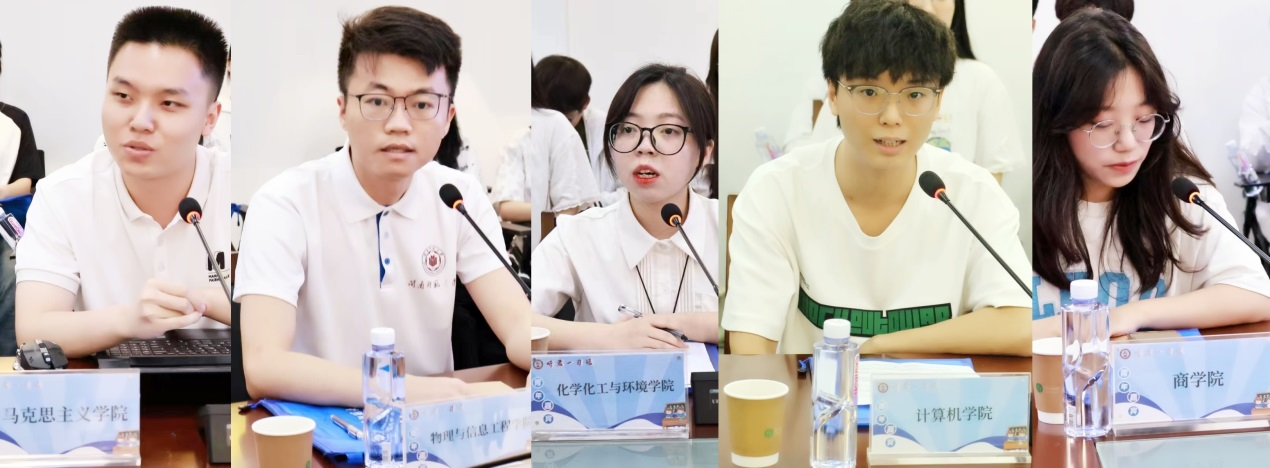 在随后的与君共话环节,各院学生代表纷纷就新质生产力如何与自身专业相结合发表看法。来自不同学院的同学们结合各自的专业背景,深入探讨了新质生产力在推动制造业智能化、数字化发展,促进科学教育创新,以及助力农业高质量发展等方面的积极作用。