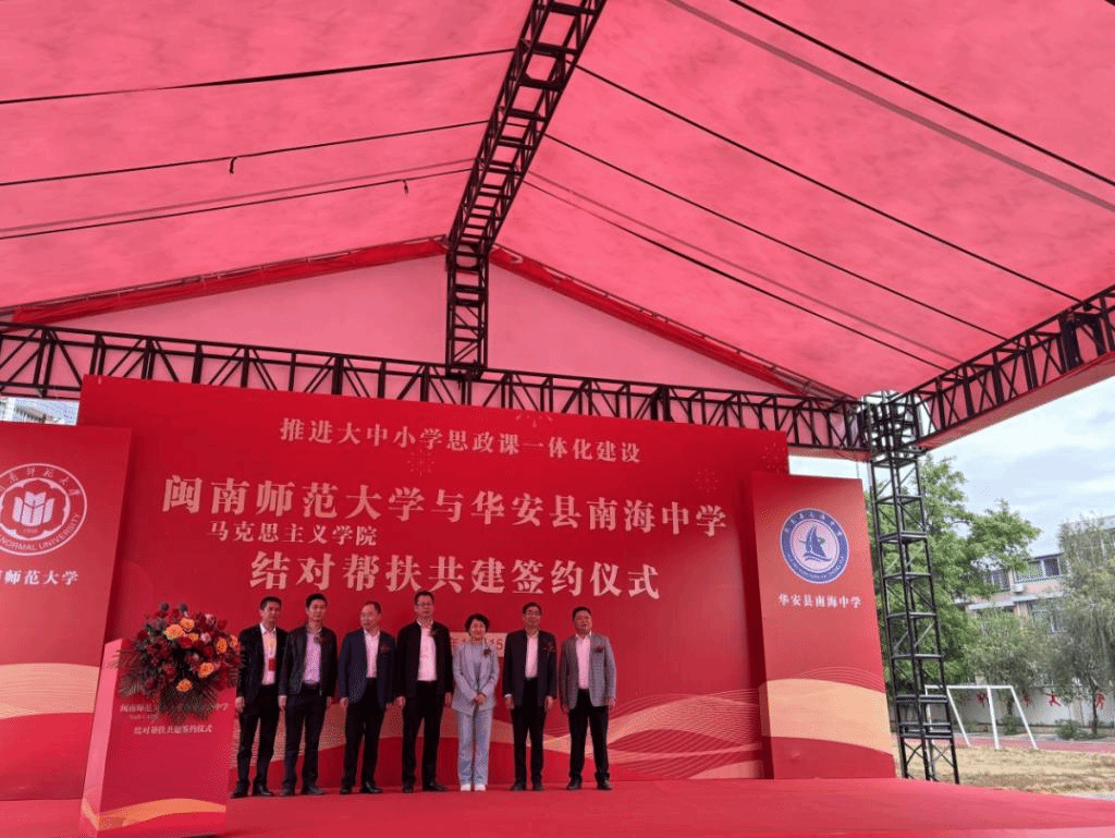 12月15日,我院党委书记方琼、院长陈再生、系主任景云和学院研究生代表赴华安,与南海中学举行结对帮扶共建签约仪式,中共华安县委常委、宣传部部长蔡森成,县教育局党委书记、局长汤奇才,华安县教育局和仙都镇、南海中学师生代表参加了签约仪式。
