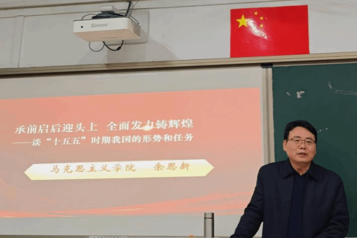 为深入学习贯彻党的二十届四中全会精神,引导广大青年学子认清时代大势、明确使命担当,12月17日晚,我院读书社特邀余思新老师在综南203教室作“承前启后迎头上,全面发力铸辉煌——谈‘十五五’时期我国的形势和任务”专题讲座,2023、2024、2025级全体社员均到场参加讲座学习。