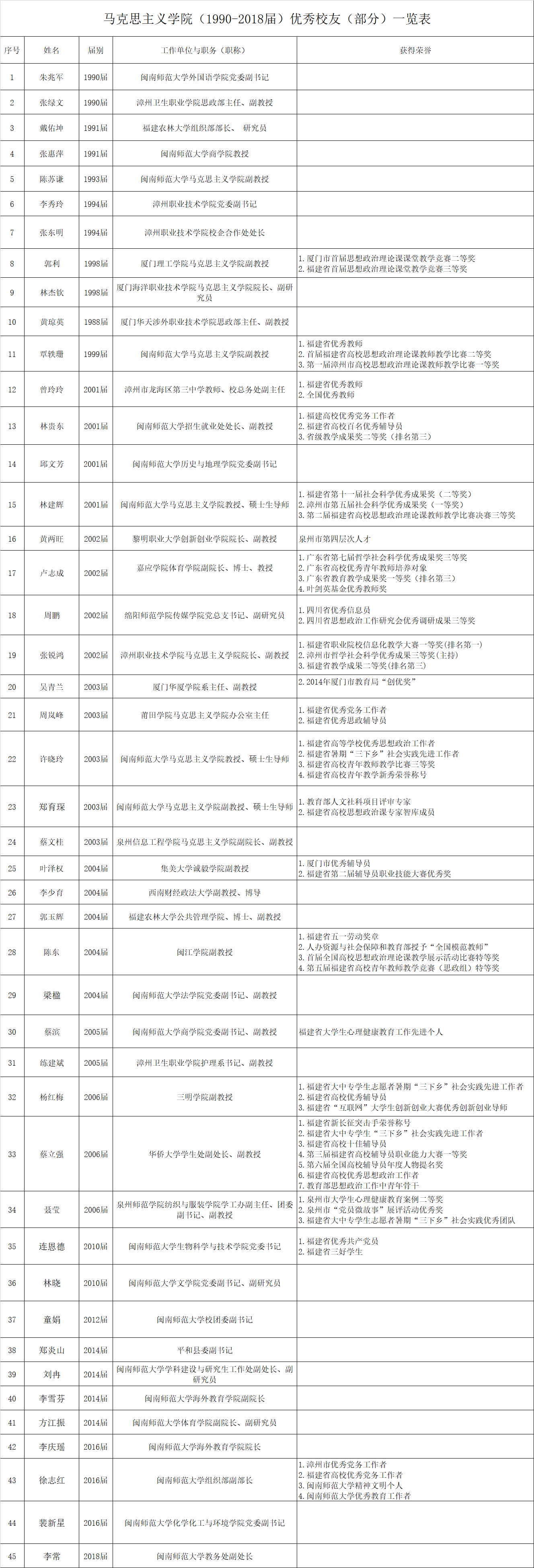 yl34511线路中心(1990-2018届)优秀校友(部分)一览表