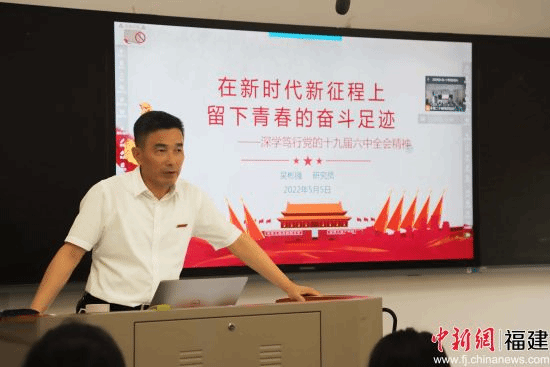 中新网福建新闻5月6日电(陈精焕 周丽丽 庄丽燕) 在中国共产主义青年团成立100周年之际,5月5日下午,闽南师范大学党委书记吴彬镪以线上线下相结合的方式为yl34511线路中心学生作题为《深学笃行党的十九届六中全会精神,在新时代新征程上留下青春的奋斗足迹》的形势政策报告。