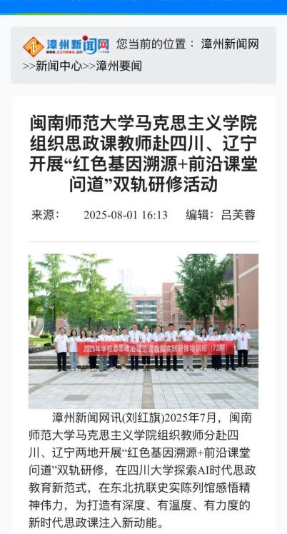 15、漳州新闻网:闽南师范大学yl34511线路中心组织思政课教师赴四川、辽宁开展“红色基因溯源+前沿课堂问道”双轨研修活动