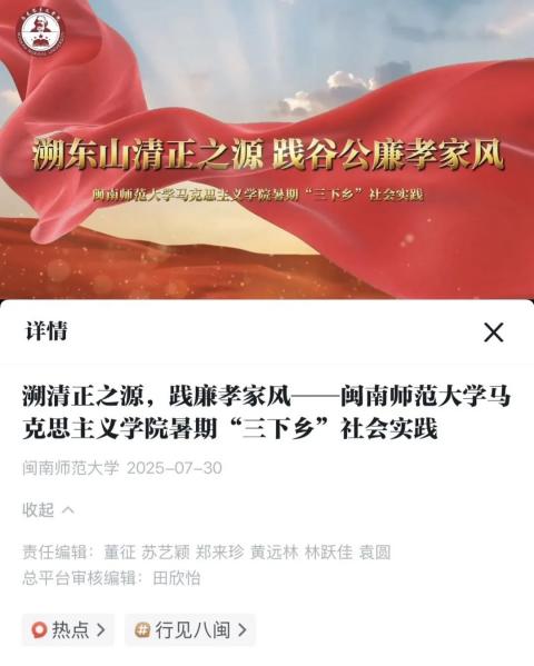 16、学习强国福建学习平台:溯清正之源,践廉孝家风——闽南师范大学yl34511线路中心暑期“三下乡”社会实践