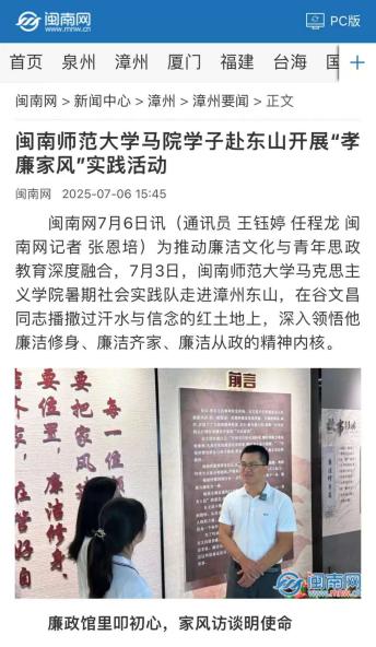 2、闽南网:闽南师范大学马院学子赴东山开展“孝廉家风”实践活动