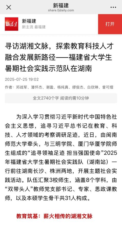 12、新福建:寻访湖湘文脉,探索教育科技人才融合发展新路径——福建省大学生暑期社会实践示范队在湖南