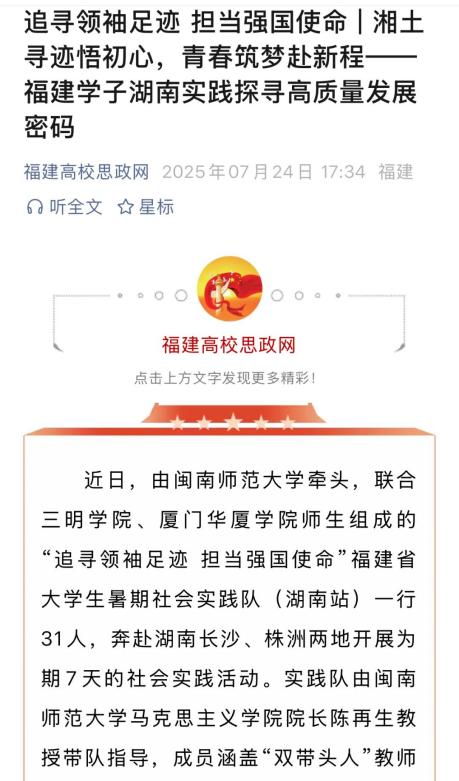 8、今日高校网:三湘溯源根基,青春如火照初心——福建学子赴湖南开展社会实践活动