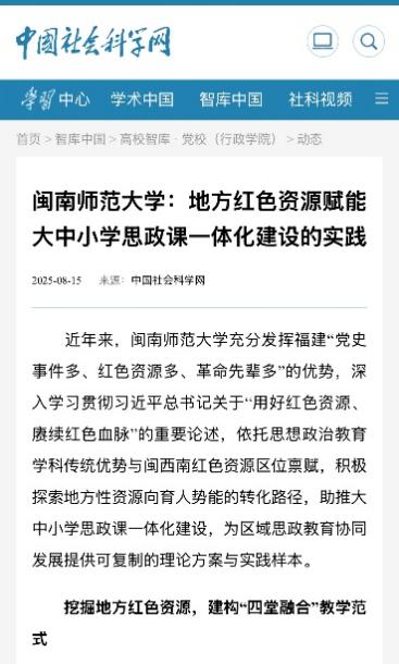 1、闽南师范大学:地方红色资源赋能大中小学思政课一体化建设的实践