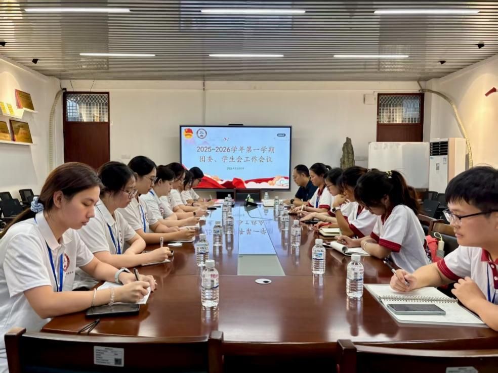 9月11日下午,我院在综中404召开2025-2026学年第一学期团委、学生会工作会议,会议由我院团委书记潘怀杰主持,团委及学生会学生干部参加。(通讯员 曾可熠)