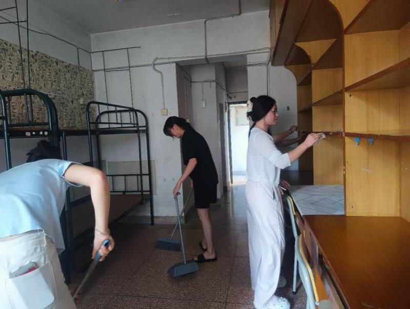 9月11日下午,我院2024级全体党员及学生干部开展2025级新生宿舍清扫工作,为25级新生营造整洁温馨的居住环境。(通讯人 许婧)