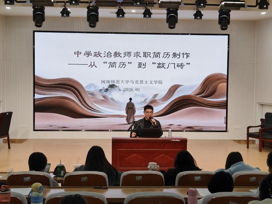 1月5日下午,我院于马院礼堂召开中学政治教师求职简历制作——从“简历”到“敲门砖”专题讲座,本次讲座由辅导员任程龙老师主讲,2023级全体本科生到场参加。(通讯员 黄娇萍)