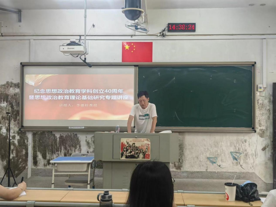 5月25日,我院读书社在综合楼南区203举办“纪念思想政治教育学科创立40周年暨毛泽东思想政治教育思想专题讲座”。(通讯员 郭盈盈)