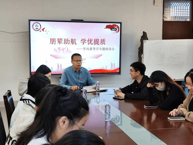 11月19日,我院于综合楼中区404会议室召开“朋辈助航 学优提质”学风督导月专题座谈会。(通讯员 朱涛)