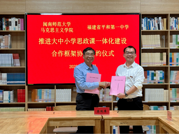3月28日,我院院长陈再生、思政系主任景云、系副主任何铭灏一行赴平和中宝食品有限公司开展访企拓岗专项行动,并与平和一中签订大中小学思政课一体化合作框架协议。(通讯员 何铭灏)